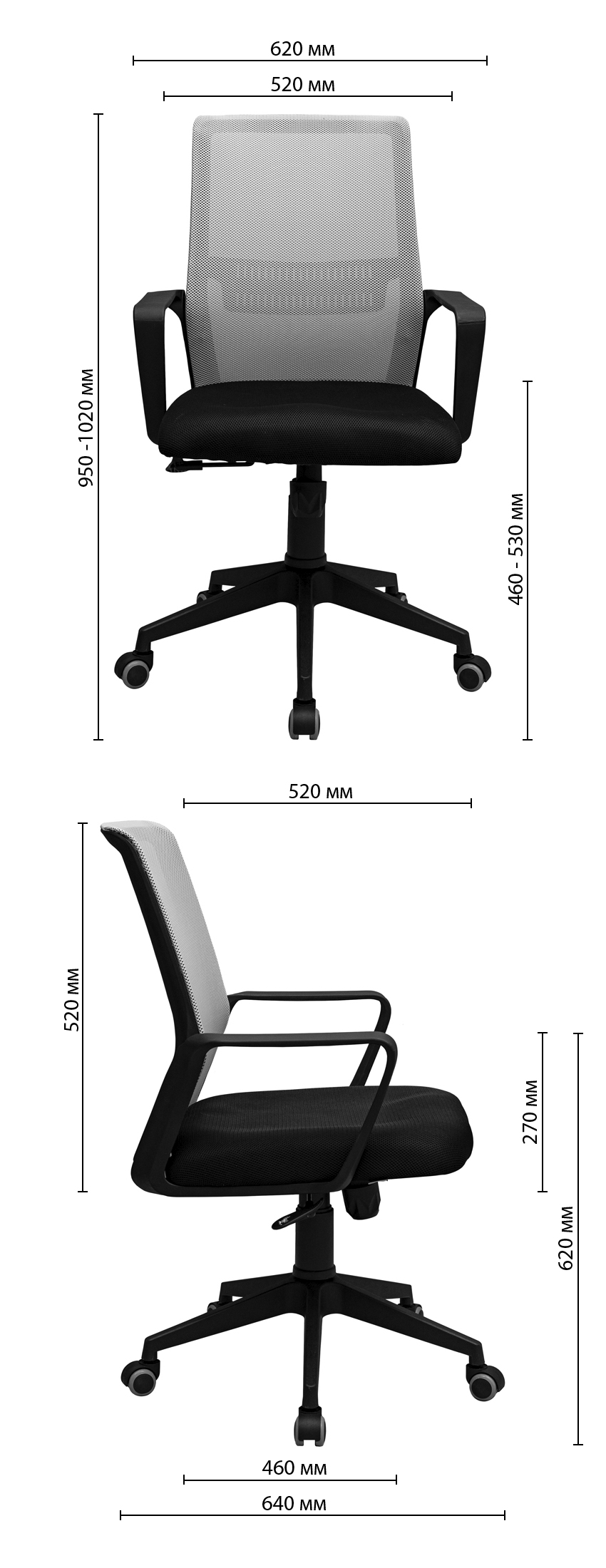 Висота підлокітників: | 270 мм |