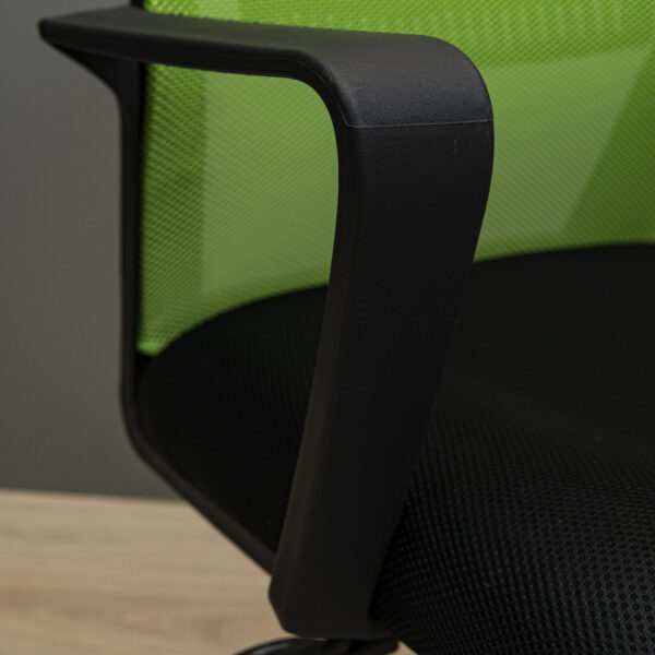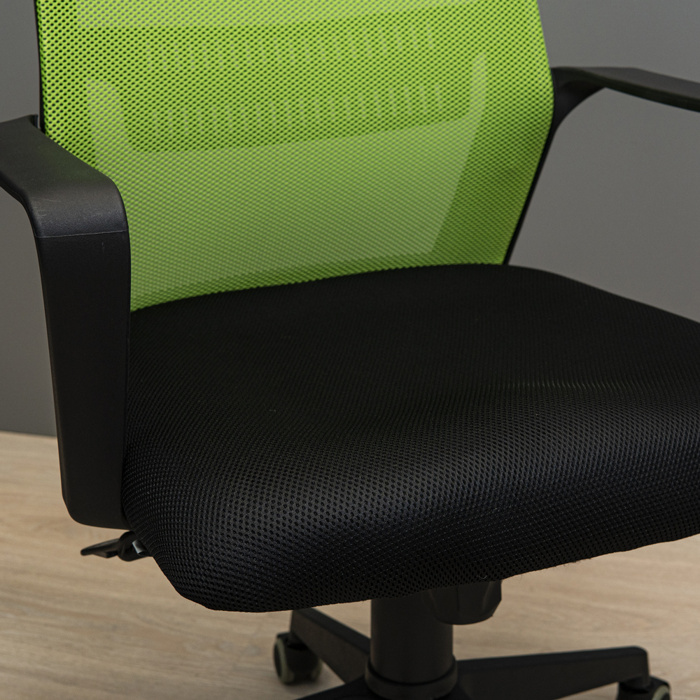Спинка виготовлена з якісної сітчастої тканини, яка забезпечує хорошу вентиляцію та комфорт навіть у спекотні дні. Модель доступна в різних кольорах сітки, тож її легко підібрати відповідно до інтер’єру чи індивідуальних вподобань. Сидіння м’яке, зносостійке, забезпечує зручну посадку та довговічність у щоденному використанні.