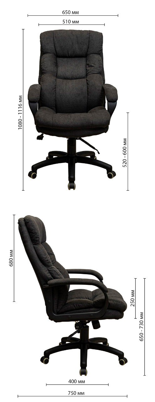 | Висота від підлоги до підлокітників у нижньому положенні: | 650 мм |