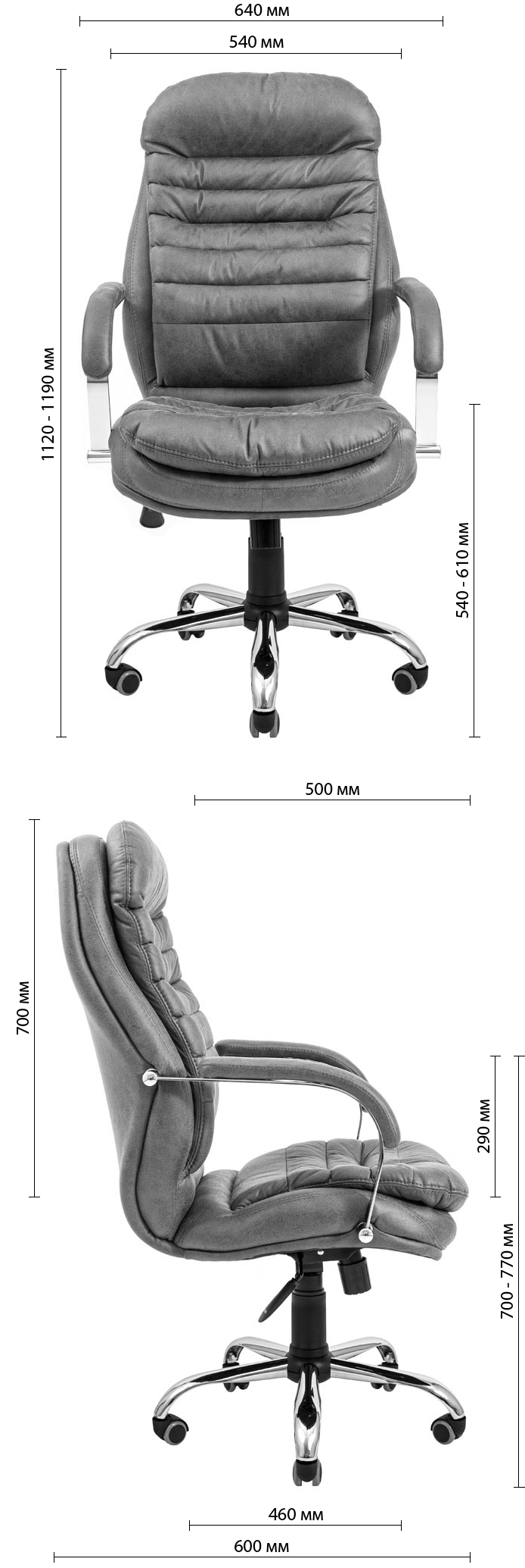 Висота від підлоги до підлокітників в нижньому положенні: 700 мм