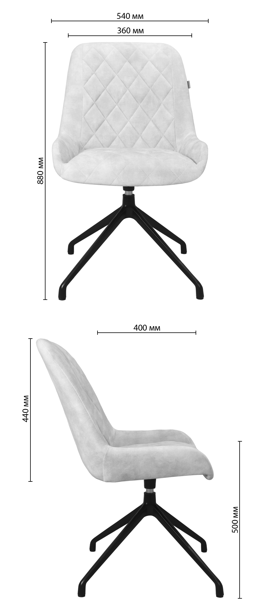 Габаритні розміри стільця Richman Еммі в комплектації Стар-4 Ніжки чорні: