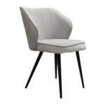 Невисока спинка стільця завдяки збільшеній боковій частині створює унікальний ефект огортання, що надає відчуття затишку користувачу. Спинка та сидіння прикрашені декоративним кантом, а також стрічкою, що додає елемент елегантності.