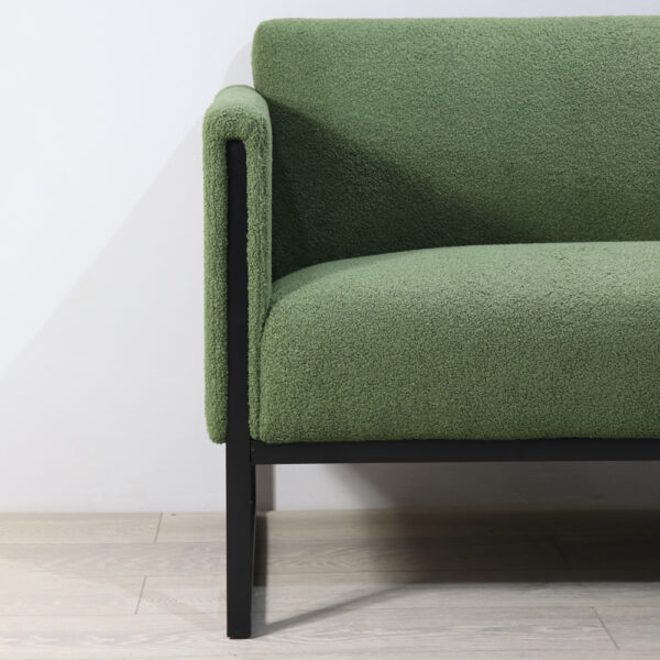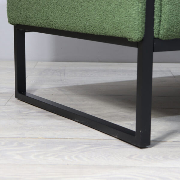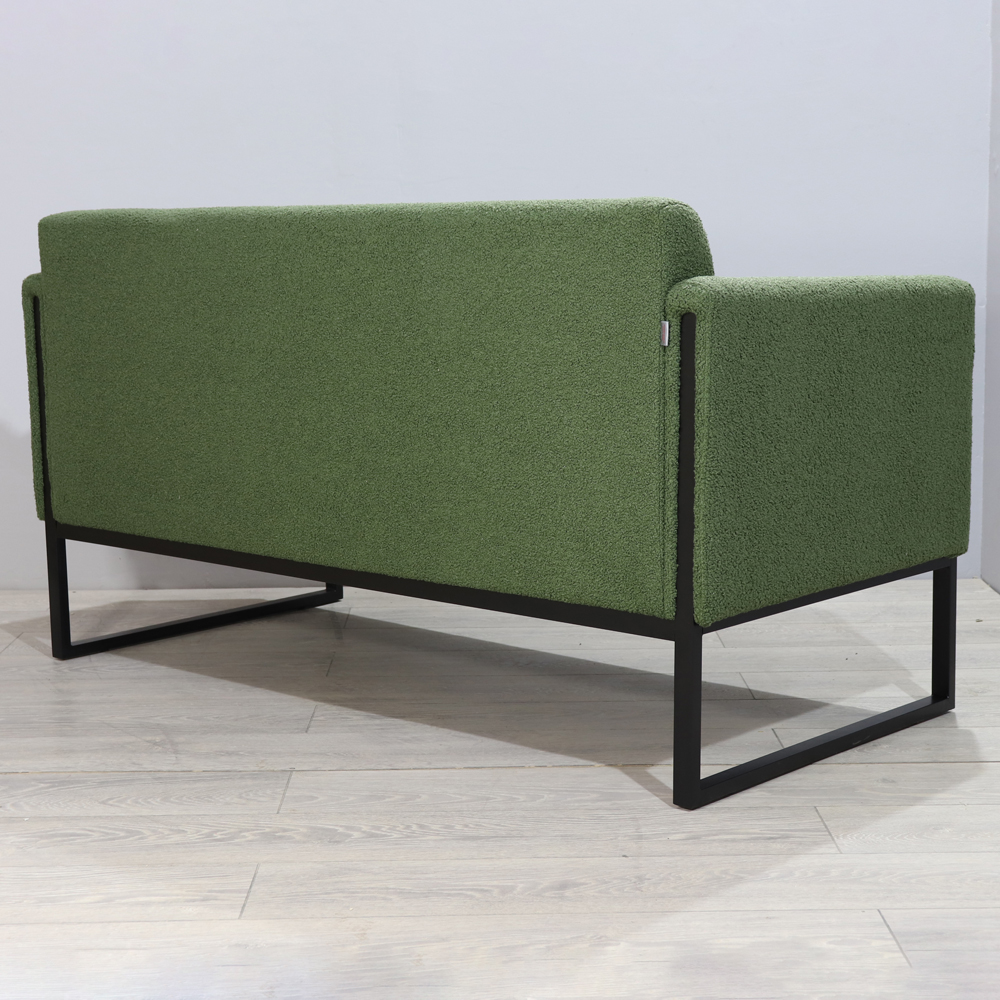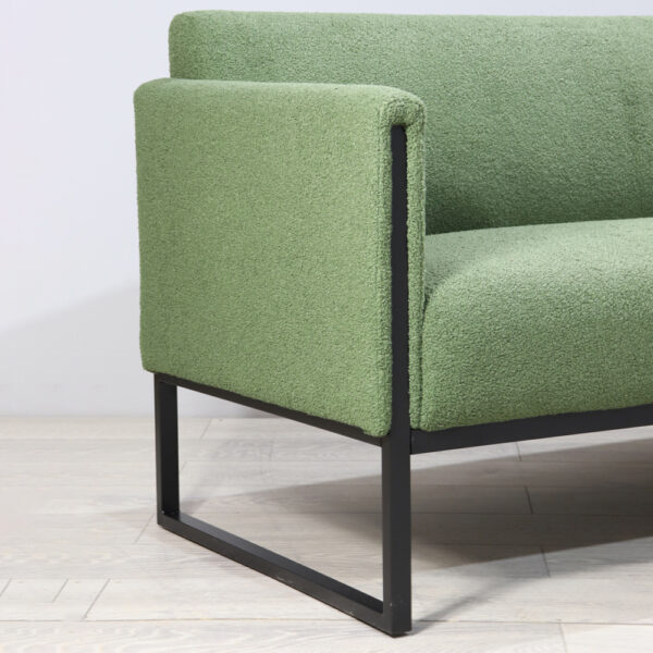 Каркас дивана выполнен из металлической трубы и окрашен порошковой краской черного цвета с термозапеканием при температуре 600 градусов Цельсия. По вашему желанию цвет окраса металлокаркаса может быть выбран по системе RAL: черный 9011, белый 9016, серый 7012.