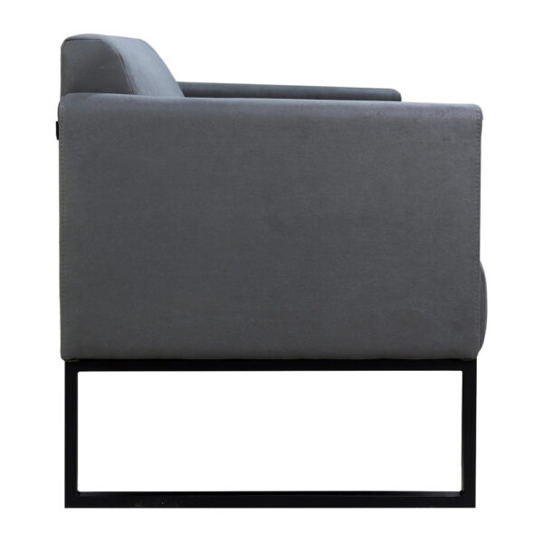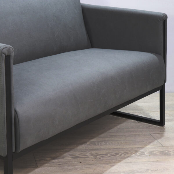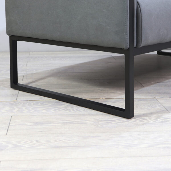 Конструкция основана на металлическом каркасе с открытым низом, что визуально облегчает мебель и создаёт ощущение простора. Такой дизайн удобен и с практической точки зрения — под диваном легко убирать. Сиденье наполнено плотным пенополиуретаном, который обеспечивает комфорт и стабильную поддержку в течение всего дня. Мягкие подлокотники подчёркивают общий стиль и добавляют уюта.