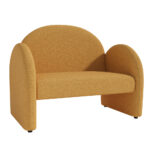 Округлые подлокотники и спинка создают мягкий, «обнимающий» силуэт, а скрытые ножки придают конструкции визуальную лёгкость. Посадка комфортная и достаточно глубокая — идеально подходит для отдыха вдвоём.