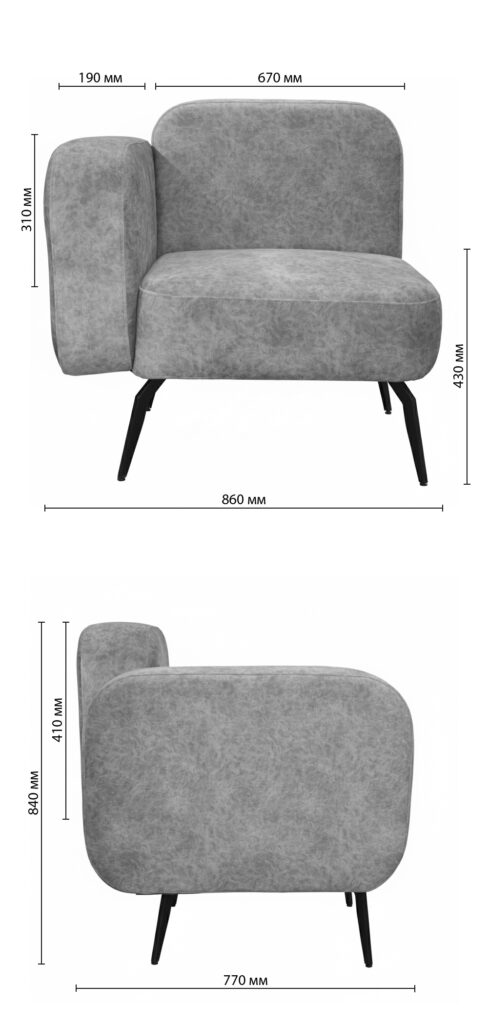 Конструкция дивана выполнена по модульному принципу, что позволяет подобрать оптимальную конфигурацию в зависимости от потребностей и площади помещения.