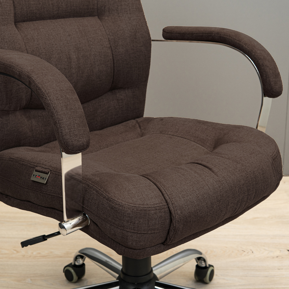 • Хром – хромированные подлокотники, оборудованные мягкими подушками и стильная хромированная крестовина из металла;