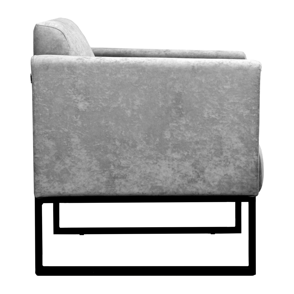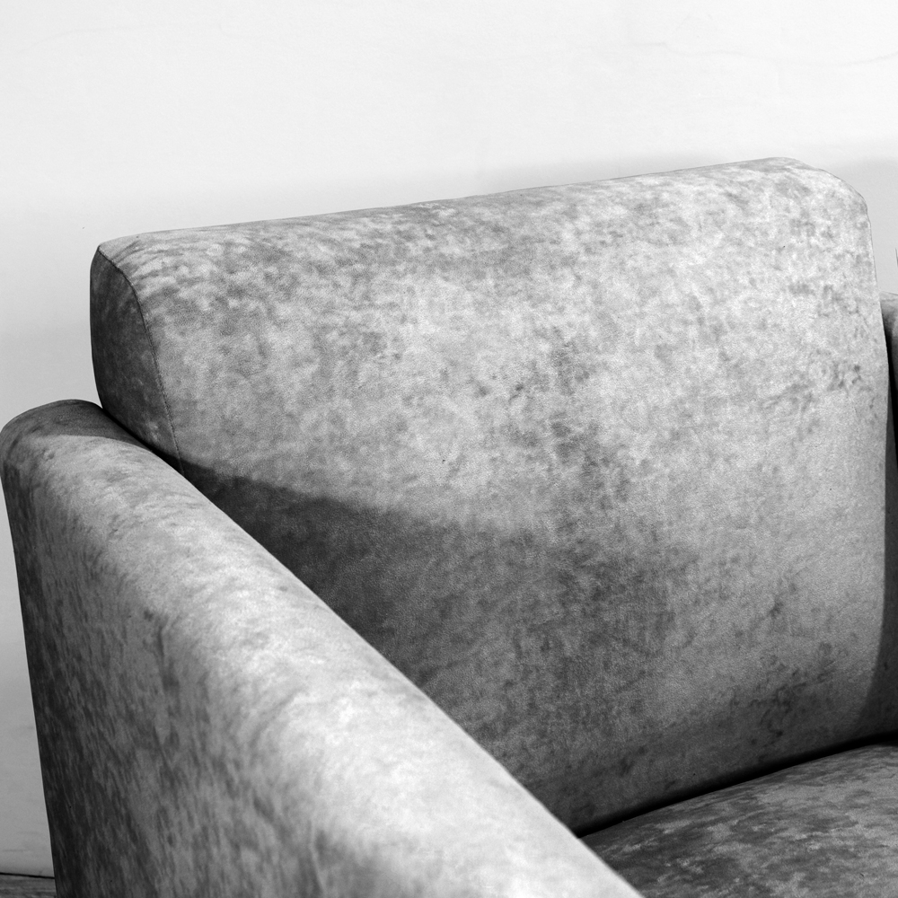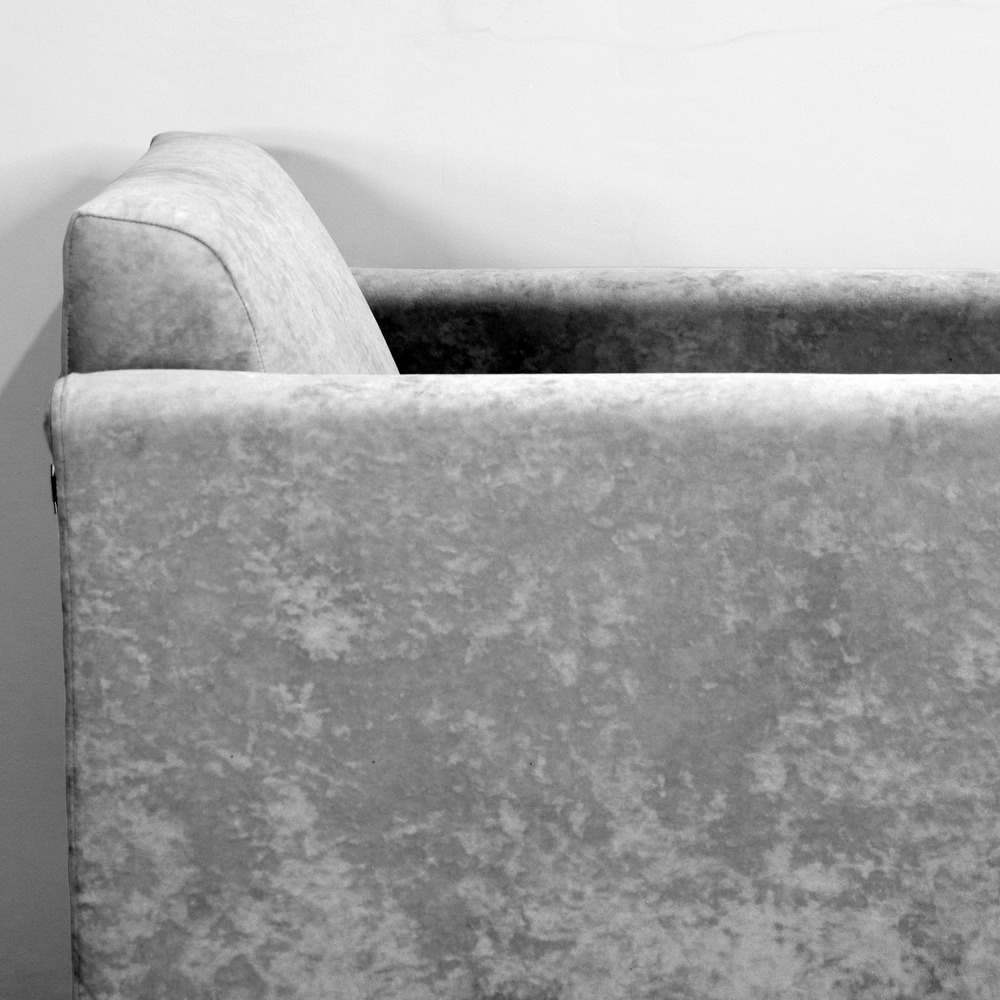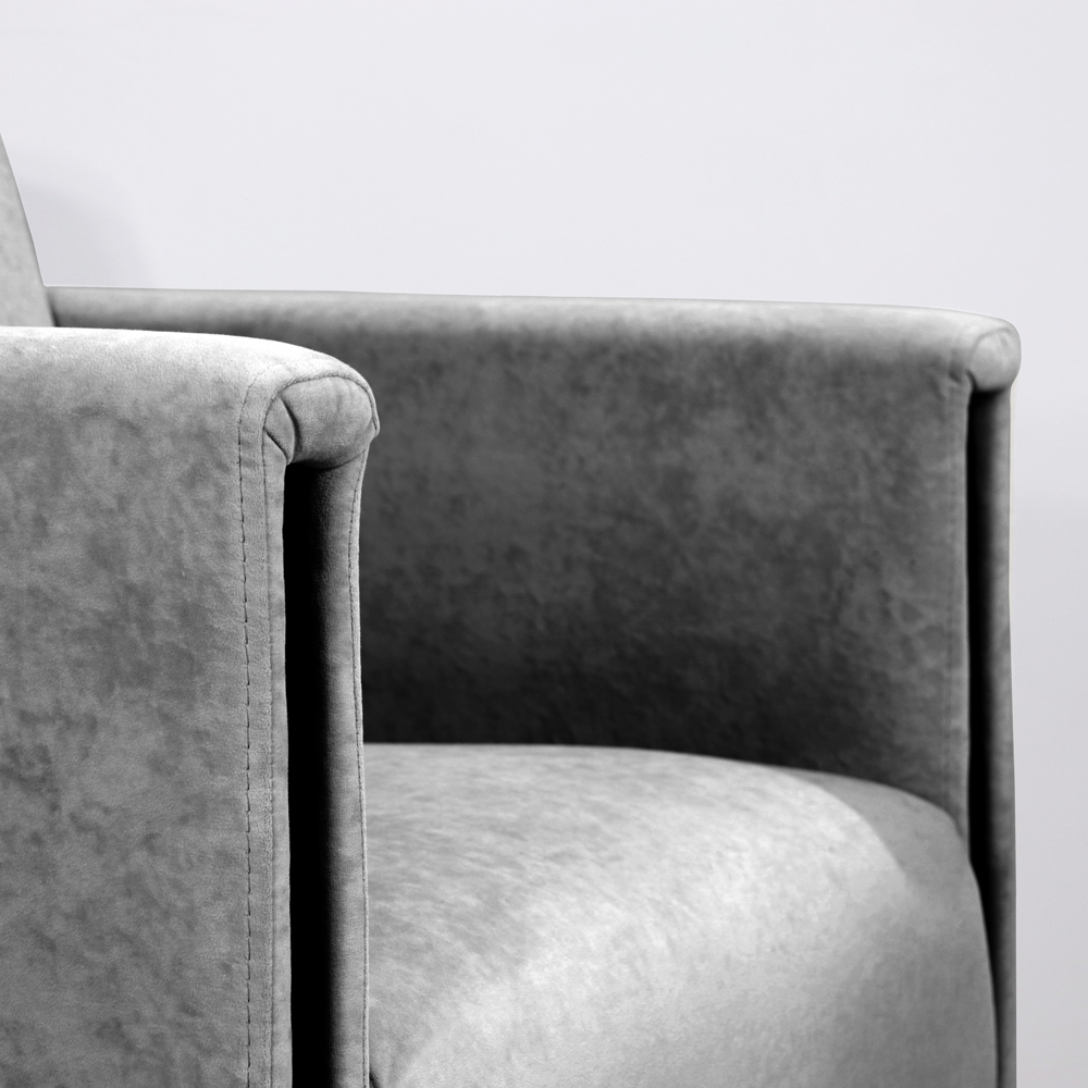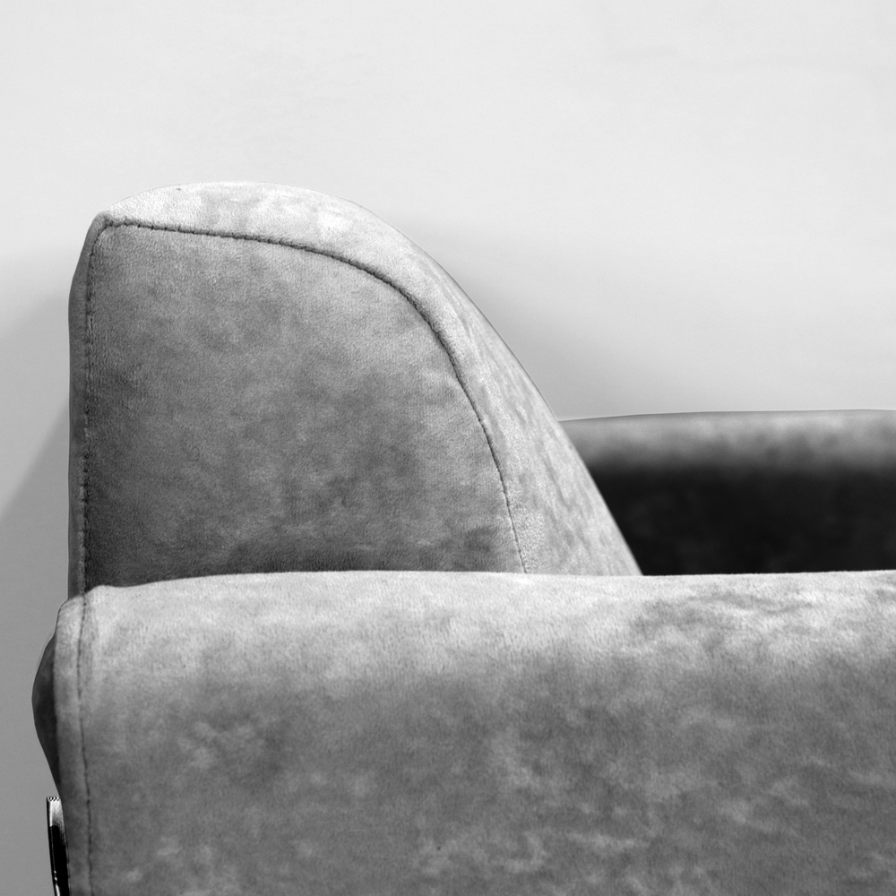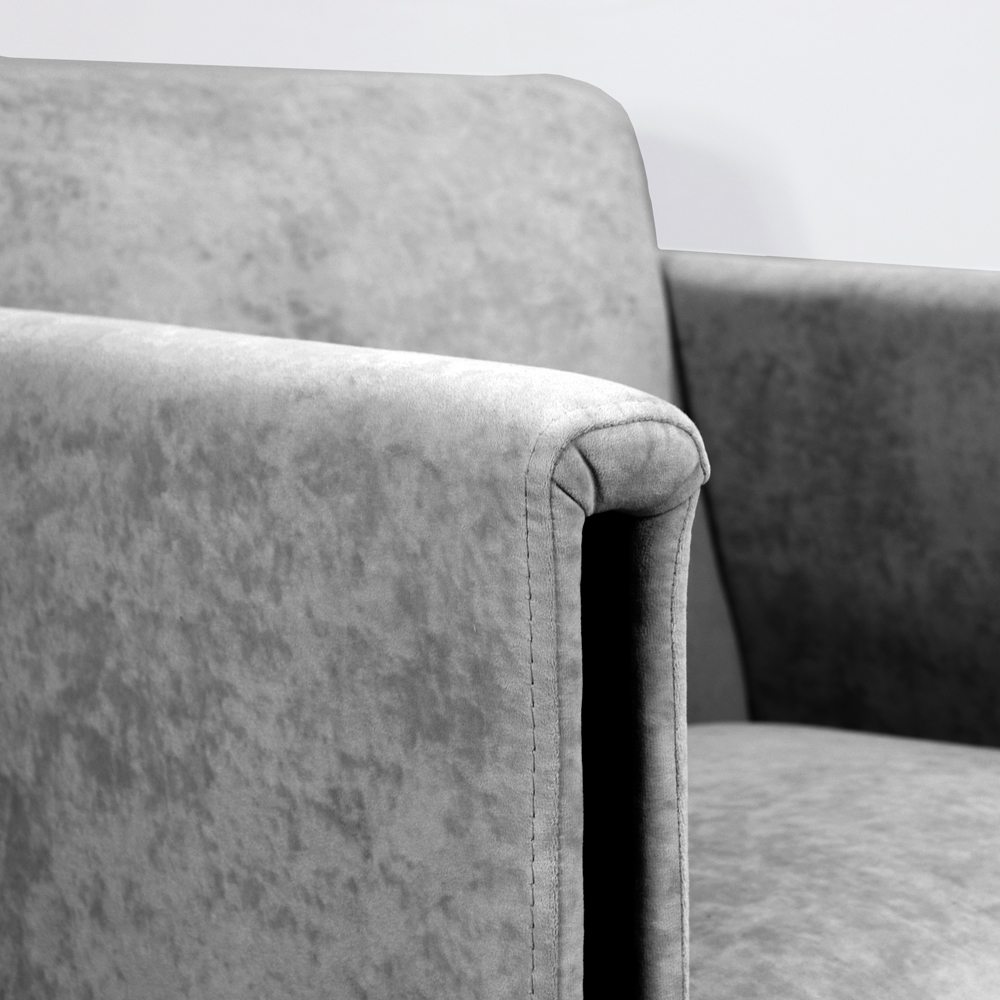 Обивка выполнена из ткани велюр Рене — бархатистой, мягкой на ощупь, с деликатной фактурной поверхностью. Оттенок Рене 22 — это светло-серый тон с легким мраморным эффектом, который придаёт мебели глубину и выразительность, оставаясь при этом универсальным. Такой цвет легко сочетается как с тёплой, так и с холодной палитрой интерьера, прекрасно вписываясь в современные, скандинавские, минималистичные и даже классические пространства.