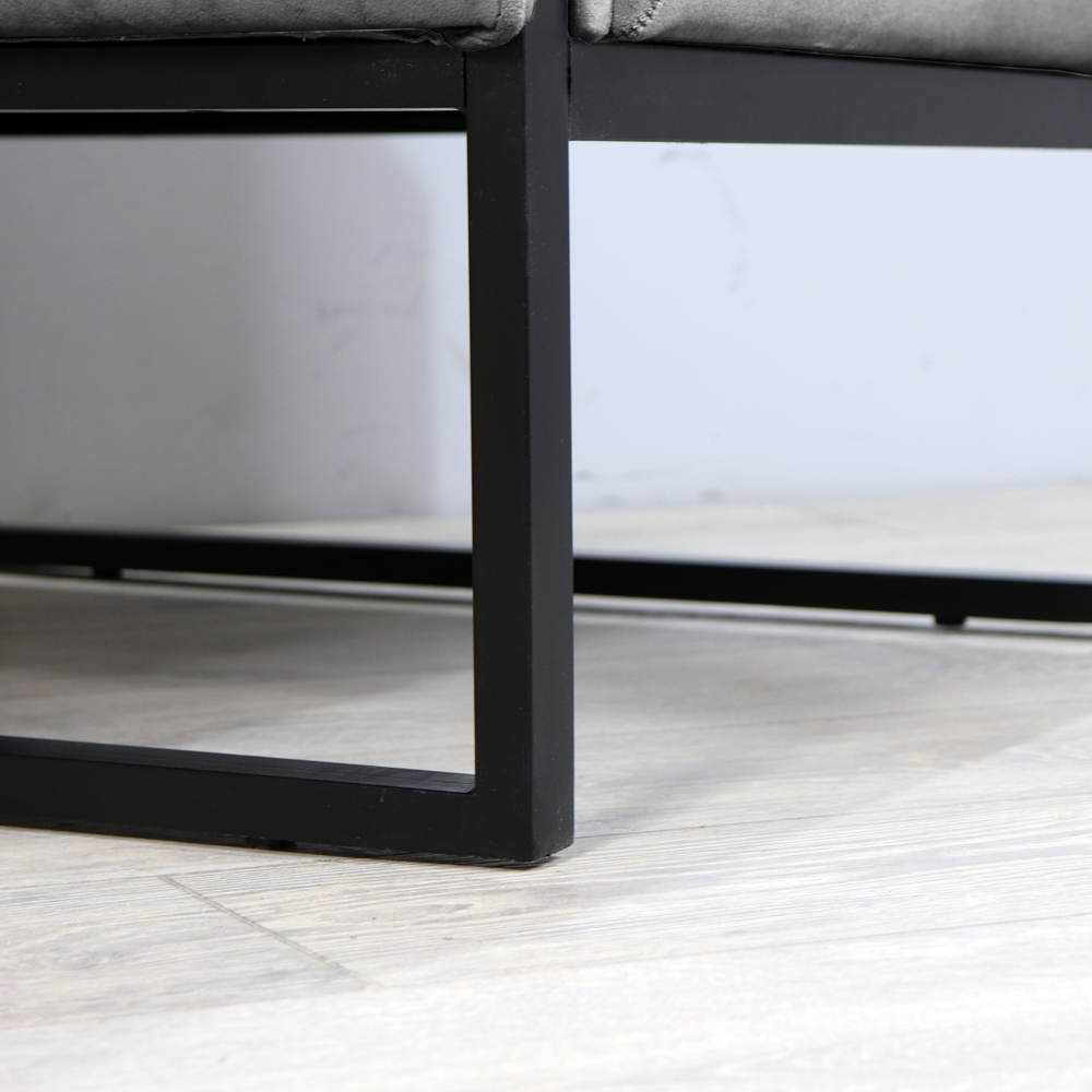 Металлический каркас кресла окрашен в матовый чёрный цвет — он создаёт эффектный контраст со светлой обивкой и подчёркивает архитектурную форму изделия. Такая база добавляет конструкции прочности, а интерьеру — современного характера.