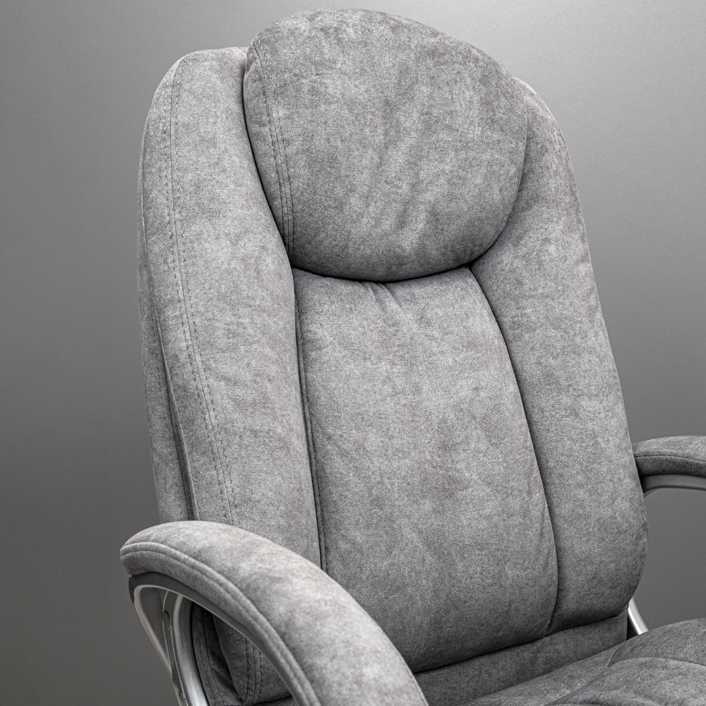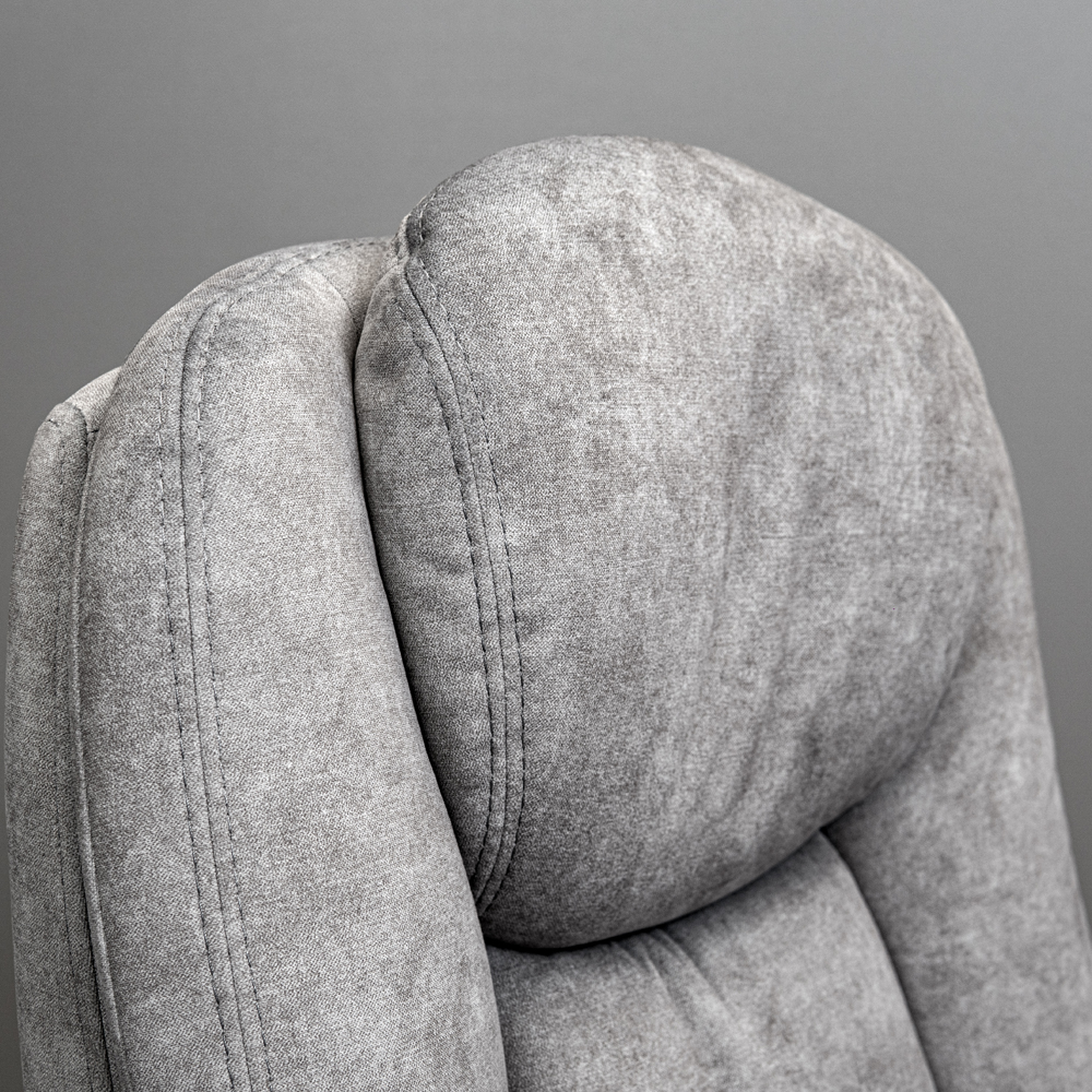 Особая форма спинки обеспечивает боковую и поясничную поддержку, способствуя удобному положению тела на протяжении всего рабочего дня. Большая подголовник с мягким наполнением дарит комфортный отдых, а анатомический валик под коленями добавляет эргономичности и расслабляет ноги.