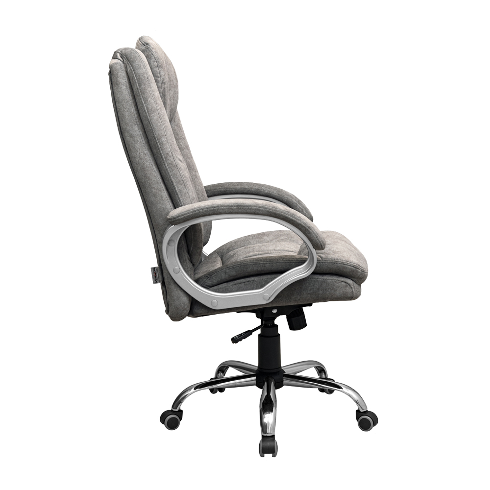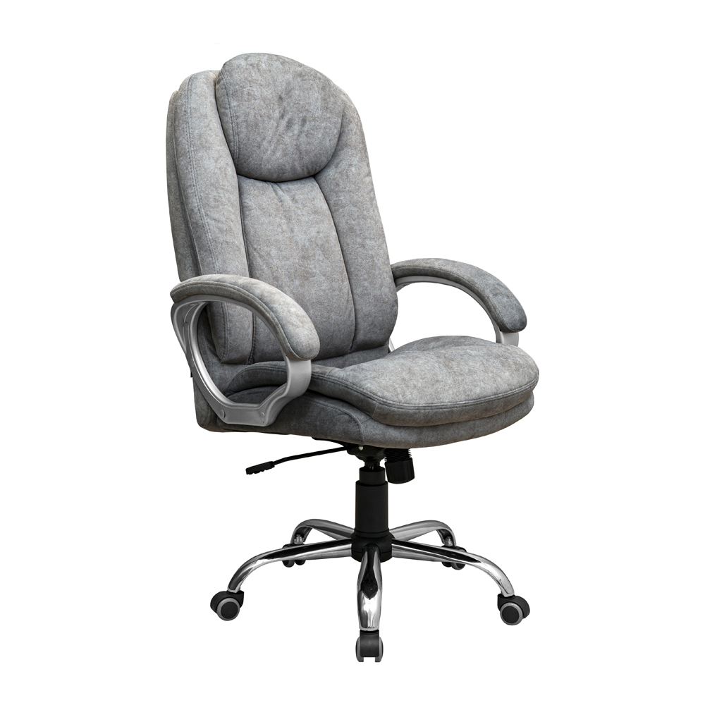 Хромированная металлическая крестовина с резиновыми колесами обеспечивает плавное движение без царапин на полу.