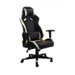 Обивка выполнена из качественной экокожи в стильном чёрно-белом сочетании. Материал приятный на ощупь, устойчив к износу и легко очищается, что делает кресло практичным для повседневного использования.