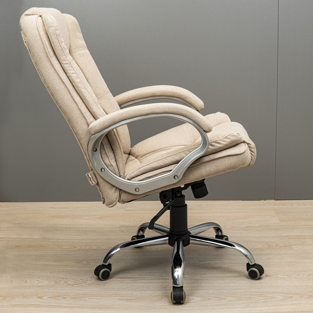 Кресло сделано из высококачественных материалов, что делает его долговечным и надежным. И доступно к заказу с разными обивками, такими как качественная экокожа, натуральная кожа или ткань, что позволяет подобрать оптимальный вариант для вашего интерьера. Кресло также оснащено мягкими подлокотниками, что позволяет комфортно разместить руки во время работы или отдыха. Дополнительно модель имеет стильную хромированную крестовину.
