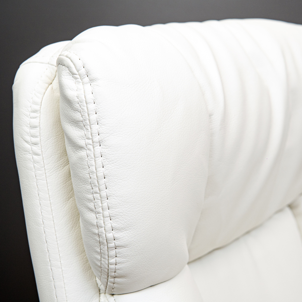 Хромированная металлическая крестовина выглядит элегантно и оснащена прорезиненными роликами, обеспечивающими бесшумное и безопасное передвижение по любому полу.