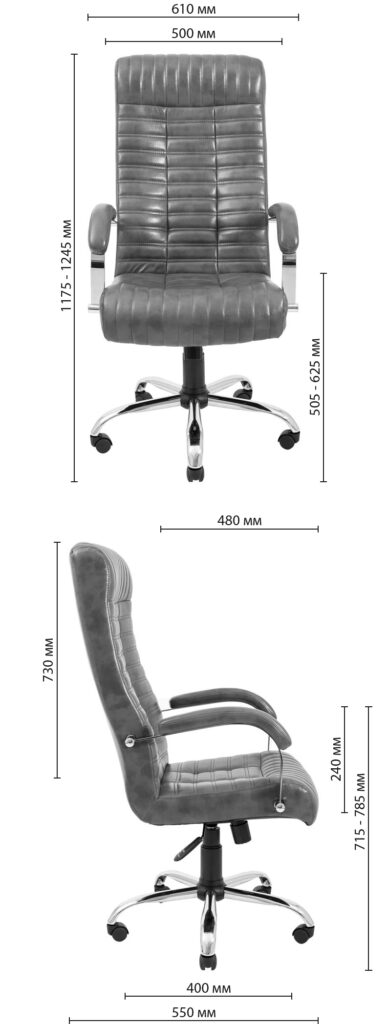 Высота от пола до подлокотников в верхнем положении: 785 мм
