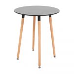 Круглая столешница диаметром 60 см выполнена из качественного МДФ белого цвета толщиной 15 мм. Деревянные ножки из твердых сортов дерева (бука) – редуцированные, то есть суженные, к полу. На нижней части ножек предусмотрены регулировочные пятачки для беспроблемной установки стола на неровный пол. В качестве соединительного элемента для ножек к столешнице используется металлическая конструкция, одновременно усиливающая устойчивость всей конструкции.